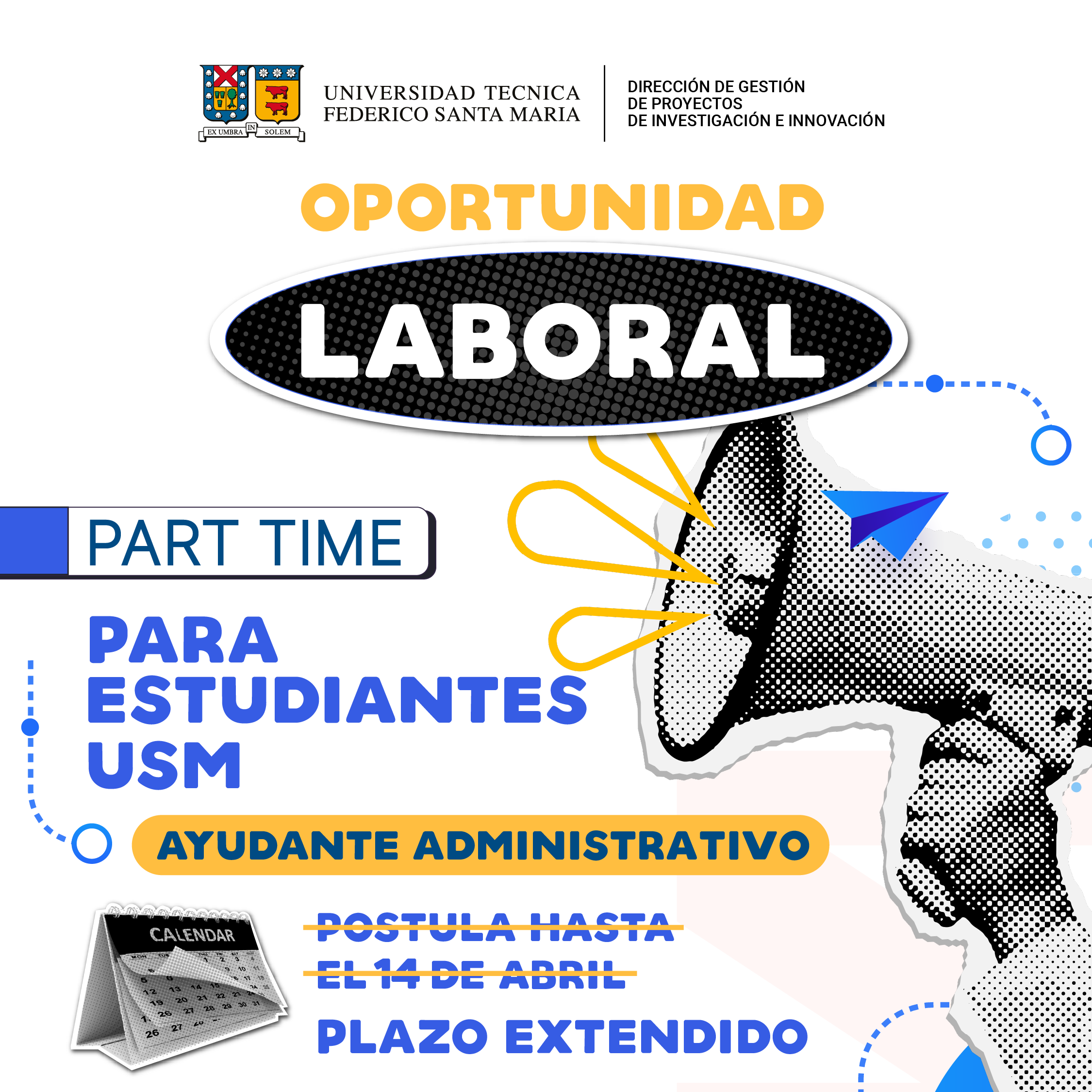 La Dirección de Gestión de Proyectos de Investigación e Innovación, busca estudiantes de áreas STEM (Science, Technology, Engineering and Mathematics) para apoyo en actividades administrativas de proyectos de investigación e innovación que desarrolla nuestra universidad.